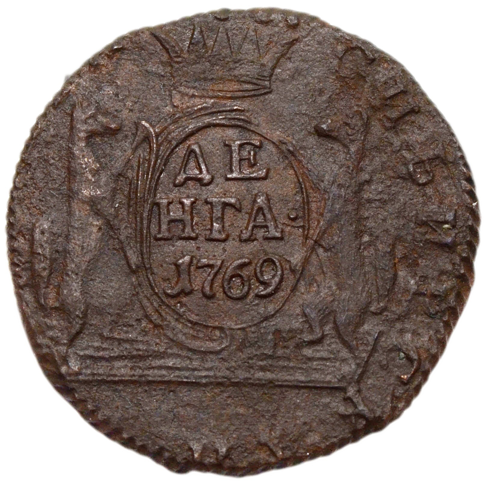 Реверс: в центре изображен картуш с надписью в три строки: "ДЕНГА", ниже год чеканки: "1769". Картуш, с обеих сторон, поддерживается двумя соболями. Выше царская корона. По окружности, вдоль канта, надпись: "СИБИРСКАЯ МОНЕТА"