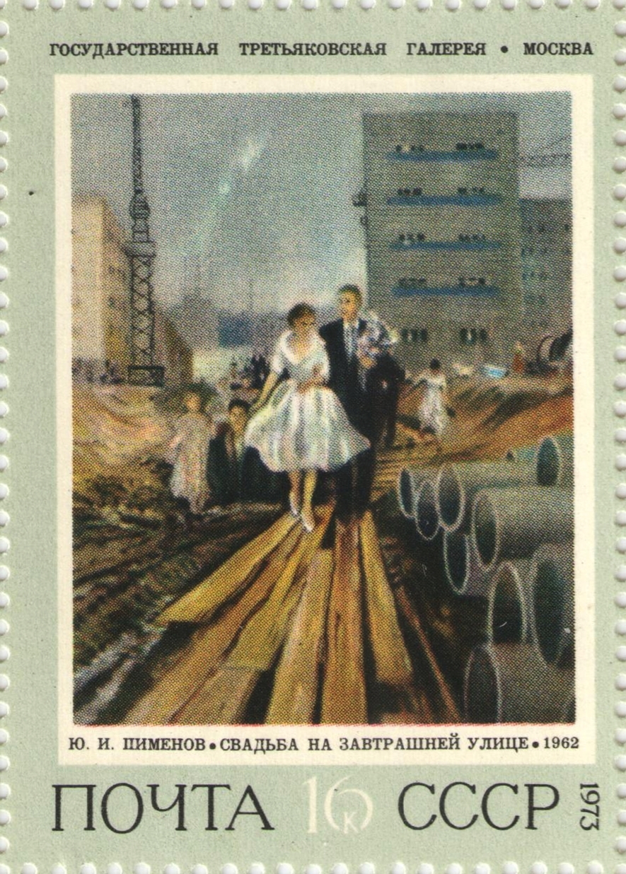 Марка 16 копеек 1973 «Свадьба на завтрашней улице (1962), Ю. И. Пименов»