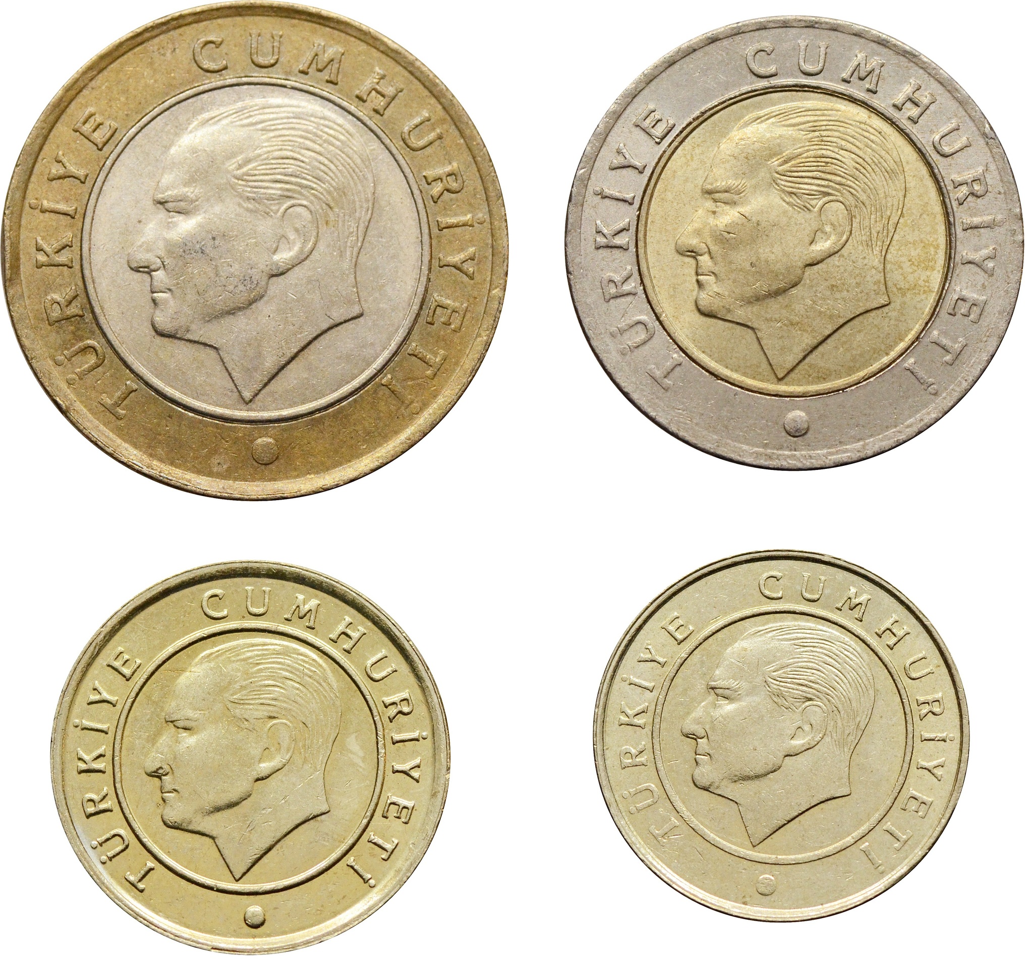 Набор из 4-х монет (случайного года) Турции в состоянии XF