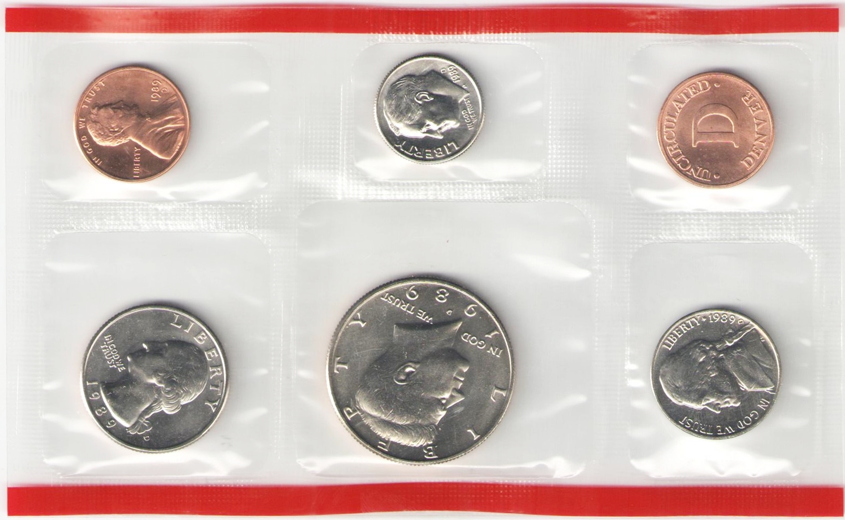 Официальный годовой набор монет США 1989 года (5 монет и жетон в банковской запайке) двор D.
