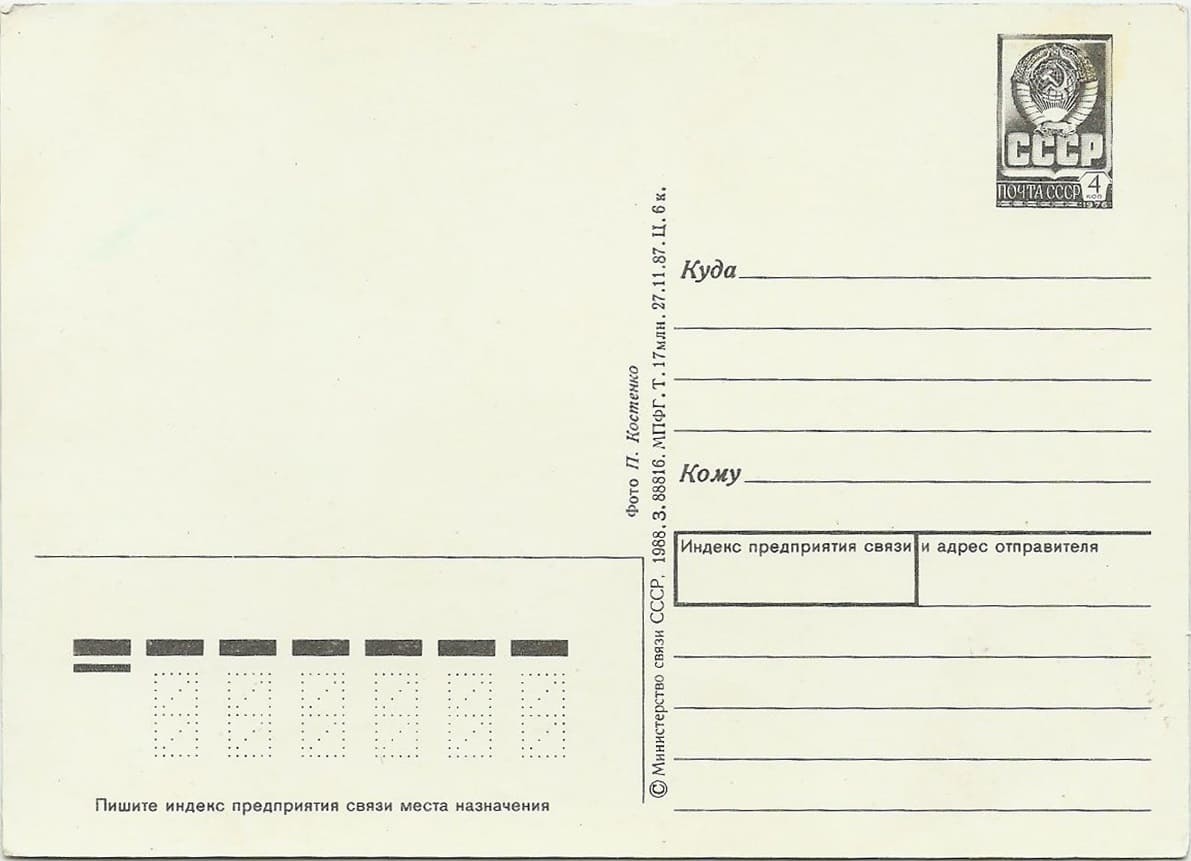 Почтовая карточка чистая, маркированная.