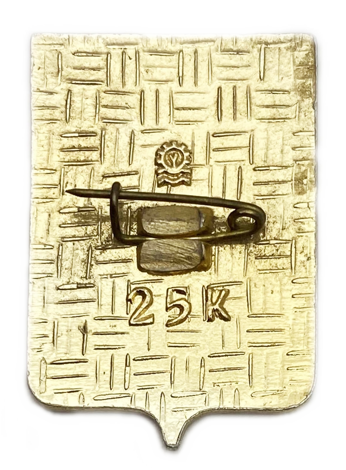 На оборотной стороне булавка, клеймо завода и надпись: "25 К".